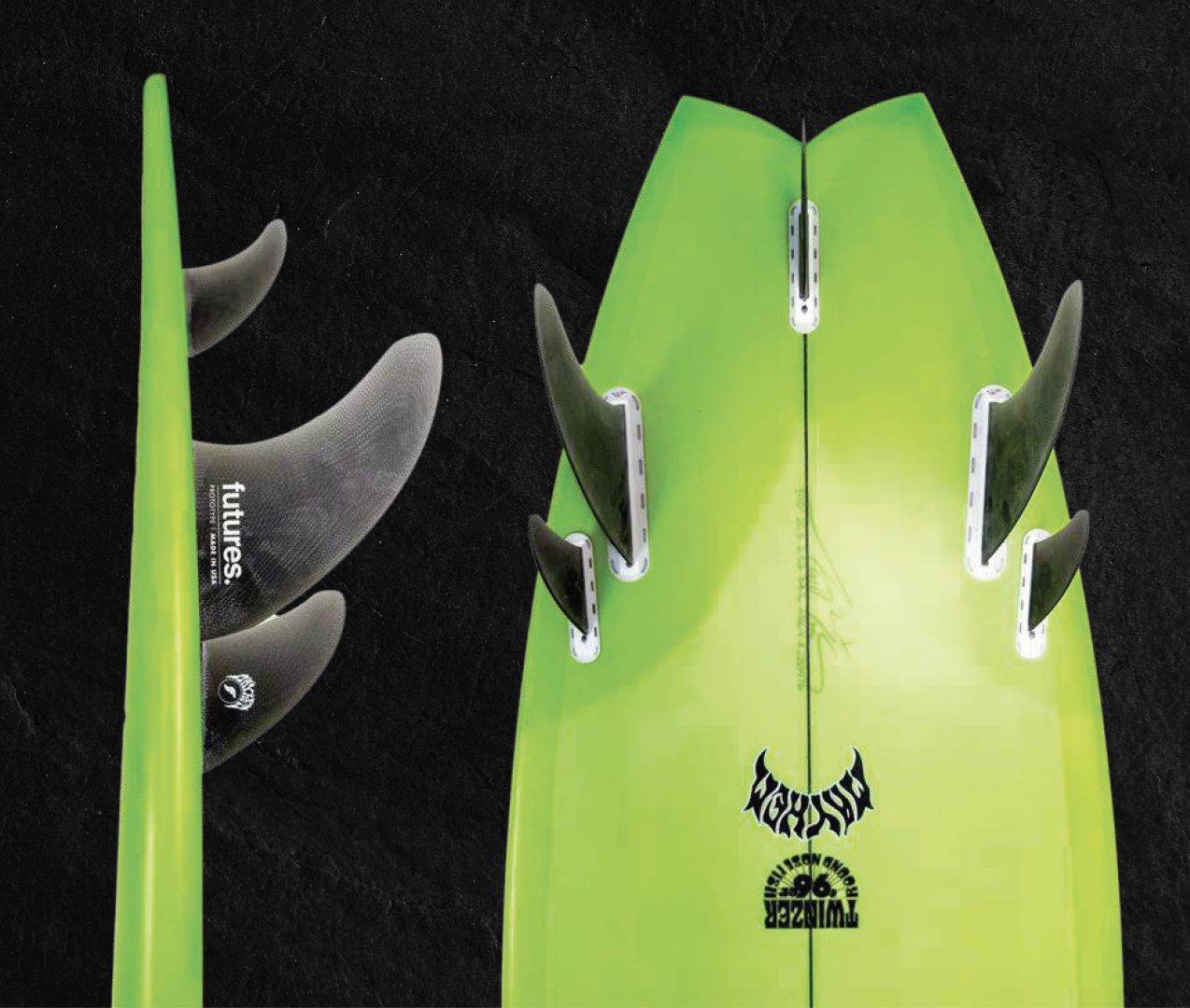 The RNF TWINZER ‘96er blends decades of proven design with modern fin innovation, adding grip, control, and drive while maintaining the speed and flow the RNF is known for. Rooted in the original hand-shaped boards ridden by Chris Ward and Cory Lopez, this design lineage has left a lasting mark on modern surfing.