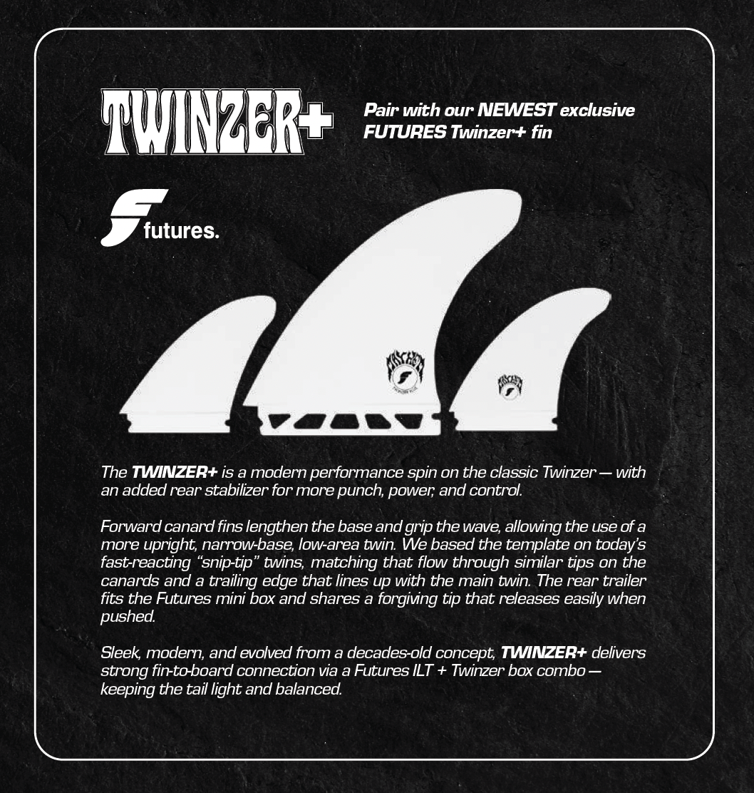 Designed to perform in everything from small, weak waves to overhead, high-performance conditions. Ride it as a loose, fast twin in everyday surf, or engage the full TWINZER+ setup when the waves get bigger and more critical.